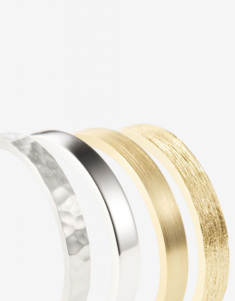 素材や形状の異なるさまざまな細いリングを一本ずつ販売し、結婚や出産、就職、引越しなどの人生の節目、あるいは新しい挑戦や胸に刻みたい出来事のタイミングに買い足して積み上げていくという、人生の歩みとともに完成させていくリングです。